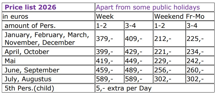 Pet € 3,50 per pet per day. The house is unfortunately only suitable for one small or medium size dog.
